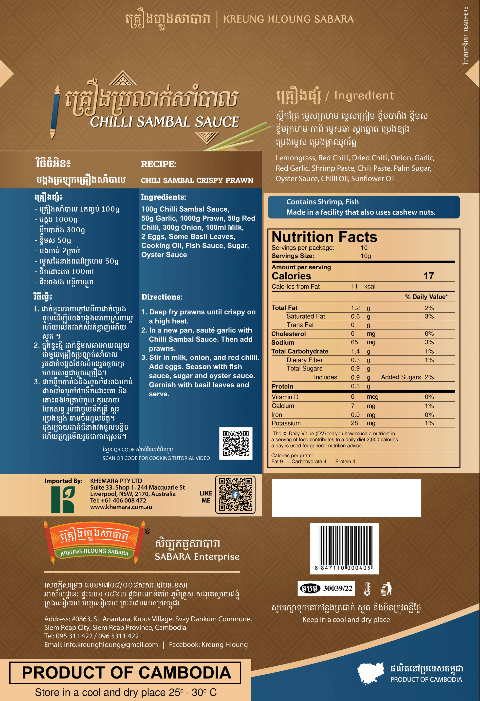 - Tags: Chilli sambal sauce, Condiments & sauce, Cooking paste, Cooking sauce, Gluten free, Halal, Pantry, Paste, Product of cambodia, Sauce