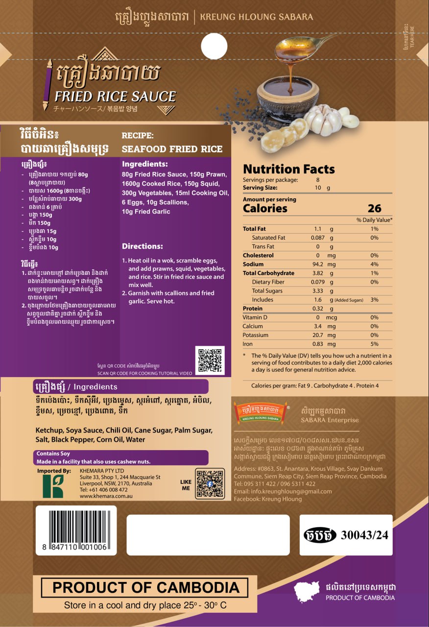 Whether you're a seasoned cook or just starting, Kreung Hloung Fried Rice Sauce is your go-to for adding authentic Cambodian touch to every plate!